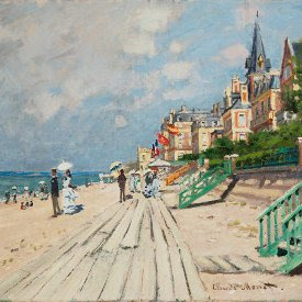 Claude Monet (1840–1926), The Beach at Trouville, 1870. oil on canvas. 22 x 25 5/8 in. Collection of Wadsworth Atheneum Museum of Art, Hartford, CT. The Ella Gallup Sumner and Mary Catlin Sumner Collection Fund, 1948.116.